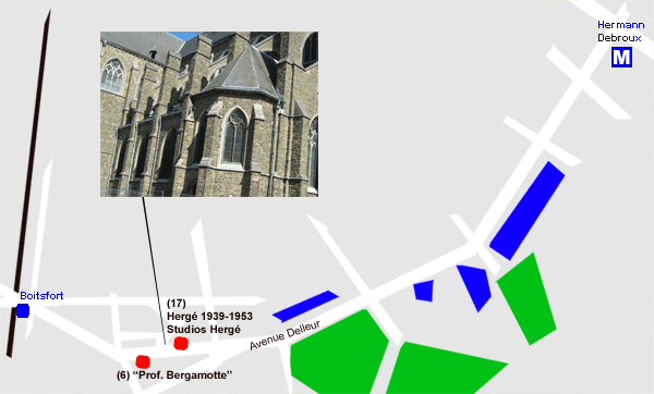 From 1939 to 1953 Hergé lived in No. 17 Avenue Delleur.Dort gründete er die Studios Hergé, die später in die Avenue Louise umzogen. There he founded the Studios Hergé, later moved to Avenue Louise