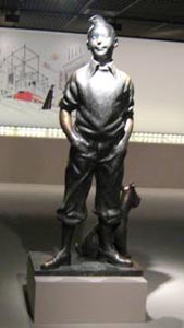 The Tintin bronze statue is located in the rooms of the Art and Cultural Center. It's made by sculpeur Nat Neujean and was ordered by Raymond Leblanc to celebrate the 30th anniversary of the Journal Tintin.
